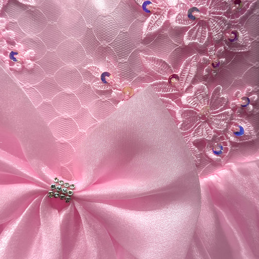 Fancy Kids Pink Embroidered Satin & Tulle Dress w/ Satin Rhinestone Bow