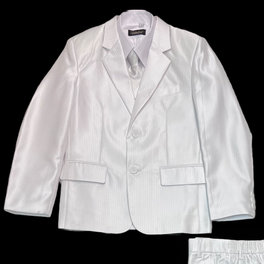 Fancy Kids Modern Fit 5-Piece White Pinstripe Suit