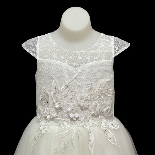 Ivory Flower Girl Dress w/ Ivory Tulle Floral Skirt