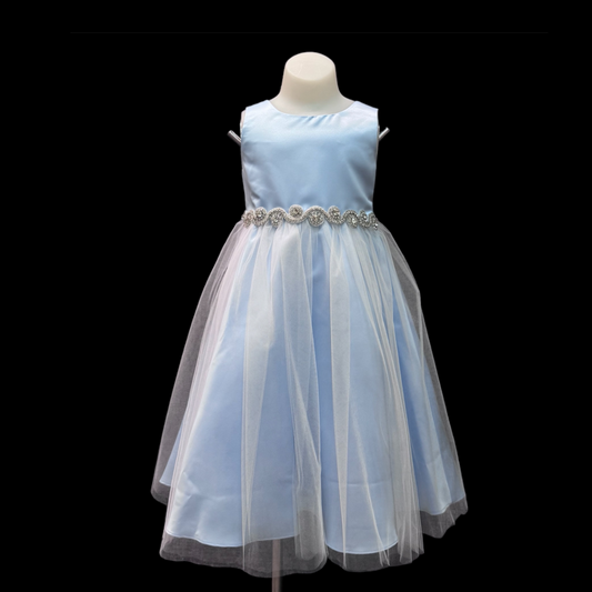 Lt. Blue Sleeveless Dress w/ Rhinestone Belt (Size 6)