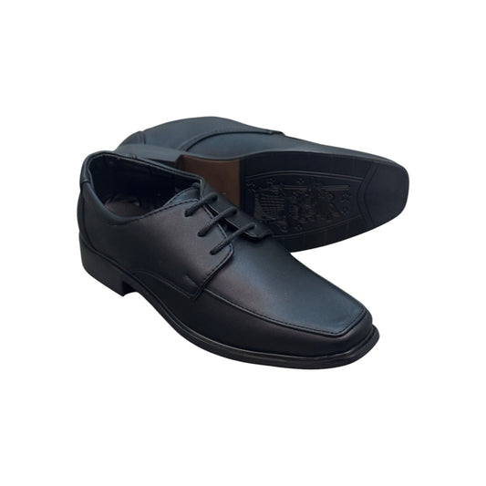 Mavezzano Box Toe Black Oxford Toddler Dress Shoe