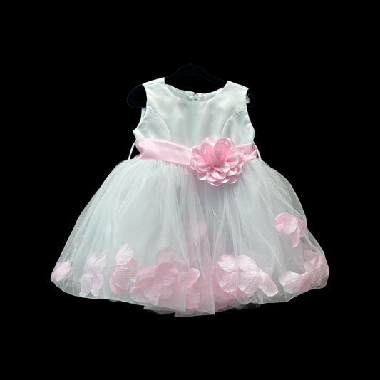 Baby Girl White Flower Dress w/ Tulle Floral Skirt