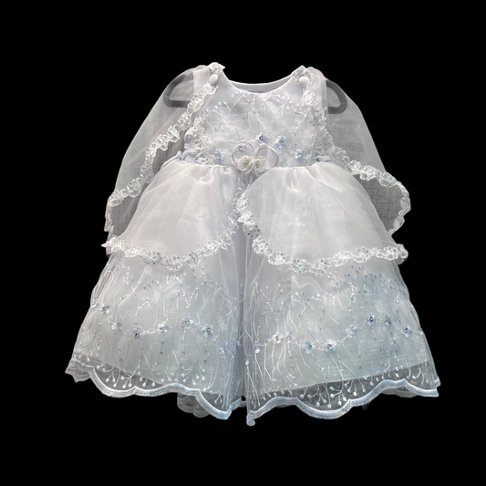 Sleeveless Floral Embroidered Baby Gown w/ Organza Cape (12-18 months)