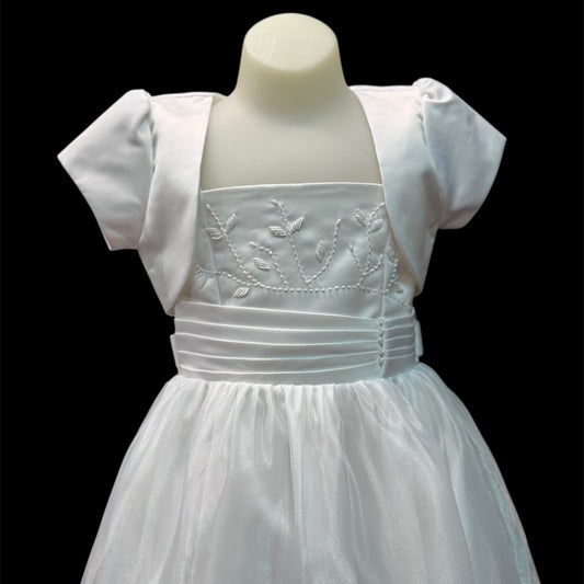 Sleeveless White Dress & Satin Bolero w/ Pearl Embroidery