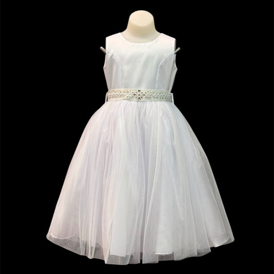 Sleeveless White Dress w/ Bow and Rhinestone Accent