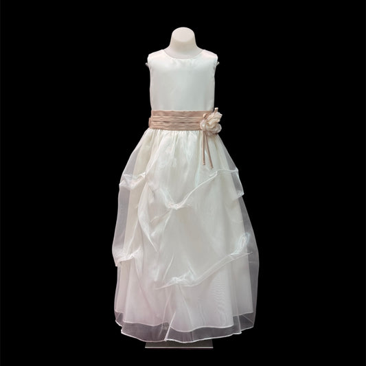 Sleeveless Ivory Dress w/ Champagne Sash (Size 12)