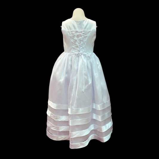 Sleeveless White Dress w/ Pearl Neckline & Organza Layered Skirt