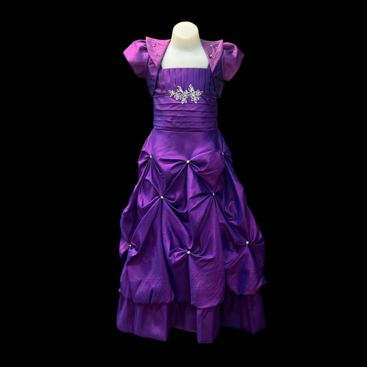 Sleeveless Purple Ruched Satin Dress & Satin Bolero