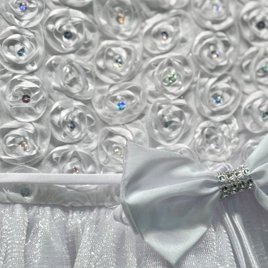 White Rosette Tulle Princess Baby Dress w/ Headband