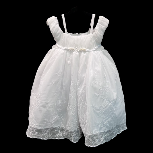 White Off-Shoulder Sleeve Enchanted Baptism Gown