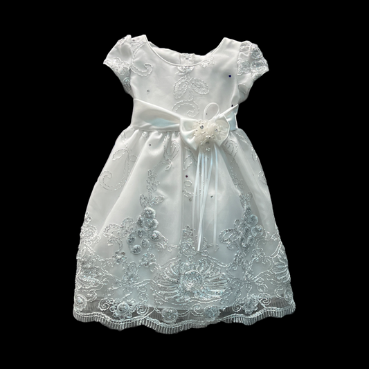 Cap Sleeve Embroidered White Bedazzled Baby Dress