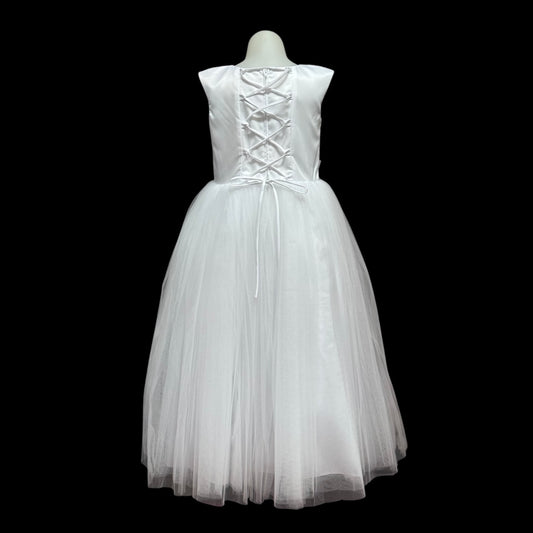 Cap Sleeve 'Hail Mary' Embroidered Baptism Gown w/ Organza Cape