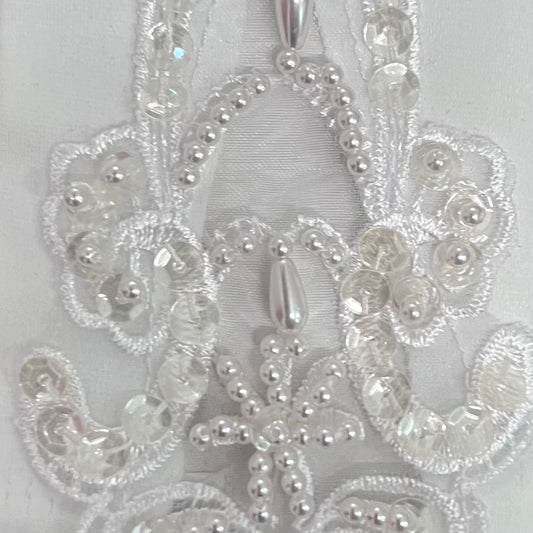Faux Pearl Necklace w/ Rhinestone Cross Pendant
