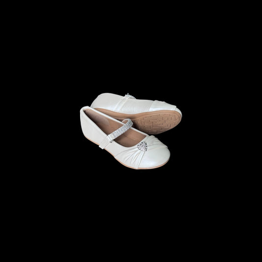 Fancy Kids Sparkle Strap Ballet Flats w/ Rhinestone Heart Accent