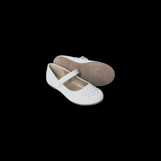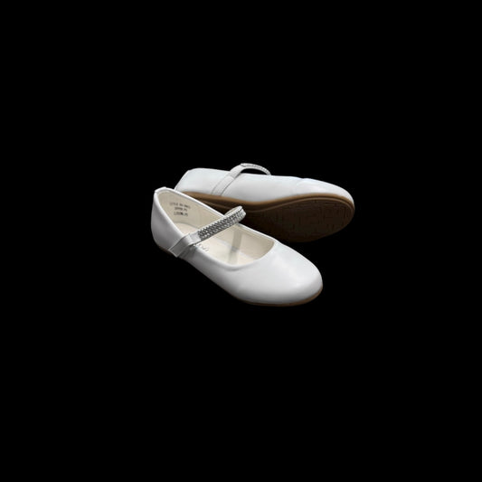 Fancy Kids Patent Leather White Flat w/ Rhinestone Strap