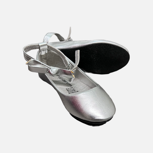 Jolene Classic Silver Ruched Ballet Flats w/ Elastic Strap