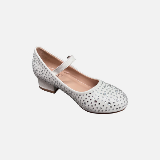 Fancy Kids Elegant Rhinestone Strap Dress Shoe w/ Small Heel