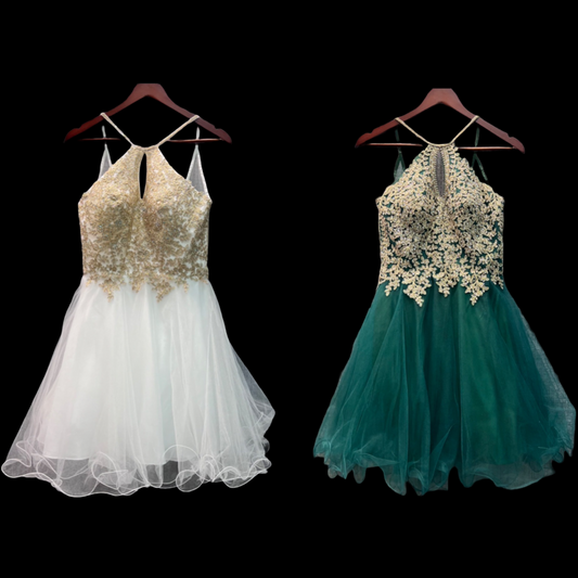 Jr. Grad Short Dress w/ Beaded Halter Bodice