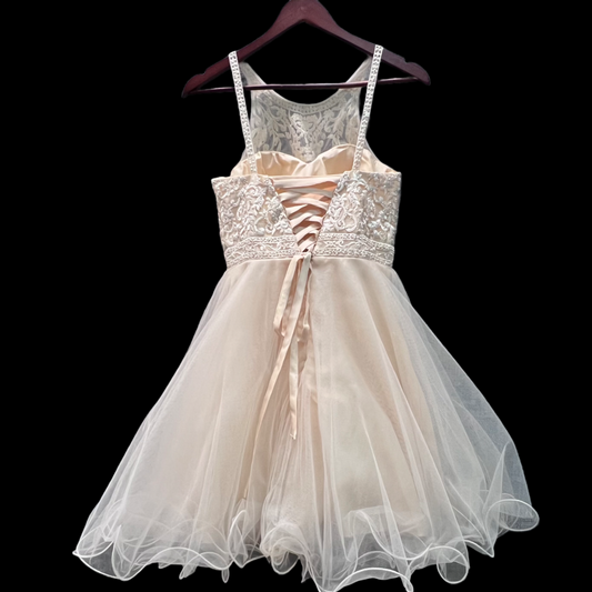 Blush Jr. Grad Dress w/ Intricate Glitter Embroidery (XS)