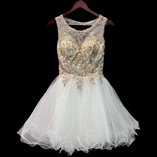 Jr. Grad Rhinestone Embroidered Short White Dress (Small)