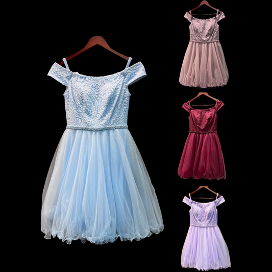Jr. Grad Off the Shoulder Short Dress w/ Lace Bodice