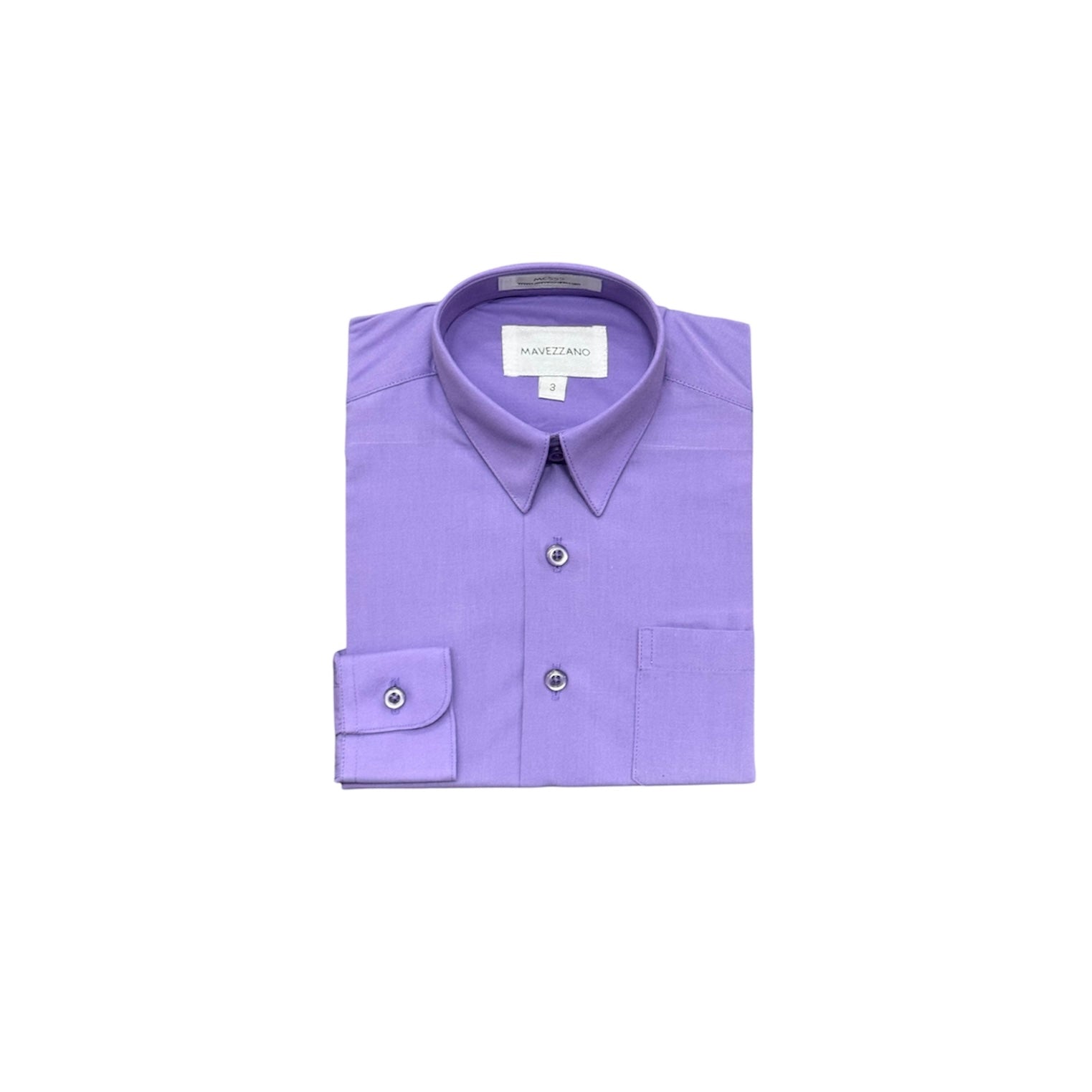Enhance your child's formalwear with this impeccably tailored slim-fit dress shirt by Mavezzano. Made from a premium poly-cotton blend, this long-sleeve shirt strikes the ideal balance of comfort, breathability, and structure, making it perfect for both smart-casual and formal occasions. Its versatile design pairs effortlessly with a suit jacket or vest and can also be worn alone for a polished, modern look. The shirt features a crisp spread collar, a chest pocket detail, and buttoned cuffs (as shown folded in the image) that contribute to its refined silhouette.