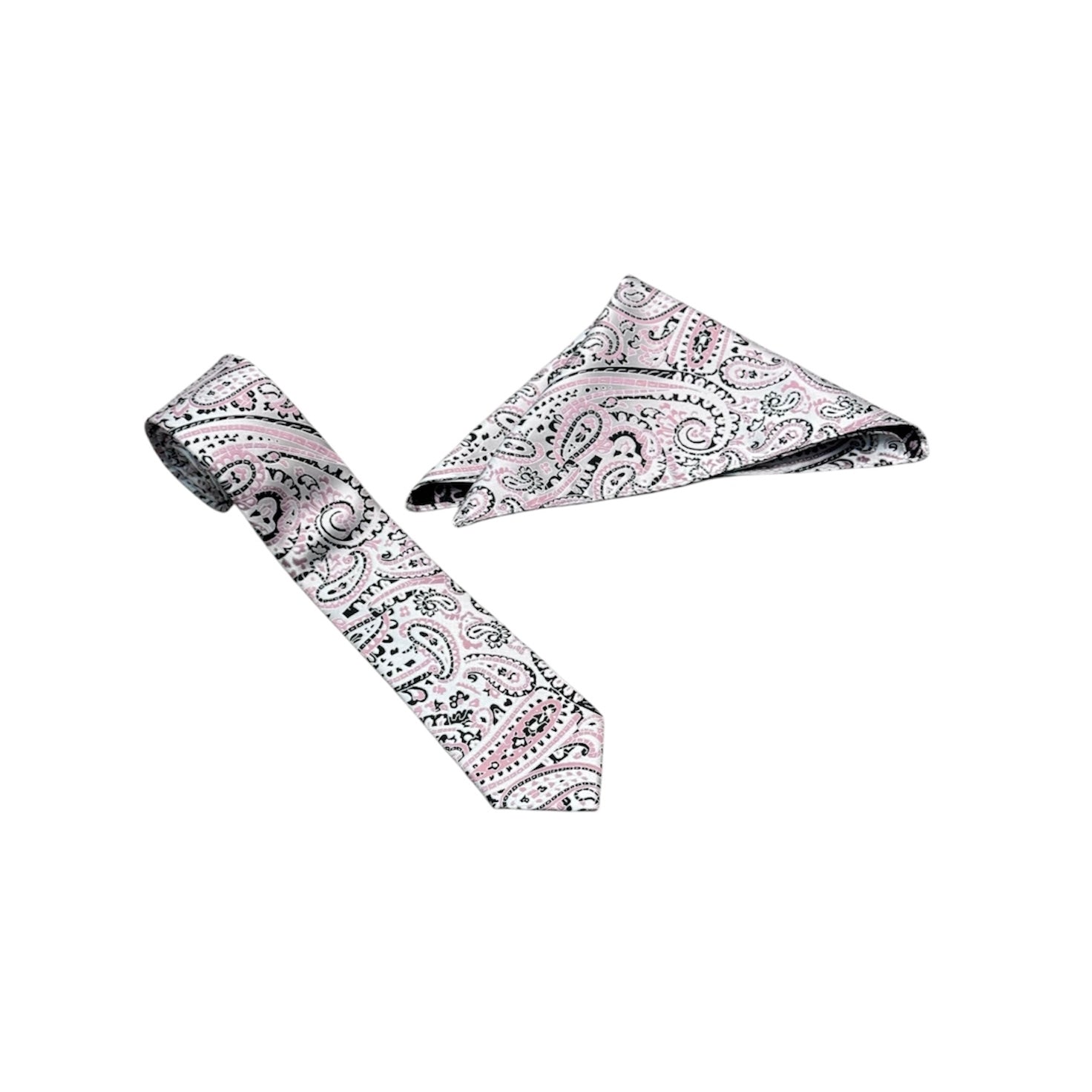 Pink, White & Black Paisley Mens Necktie & Pocket Square