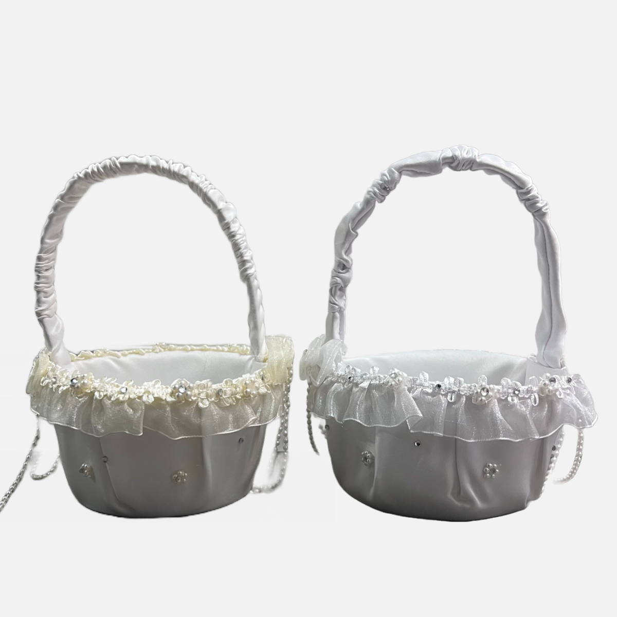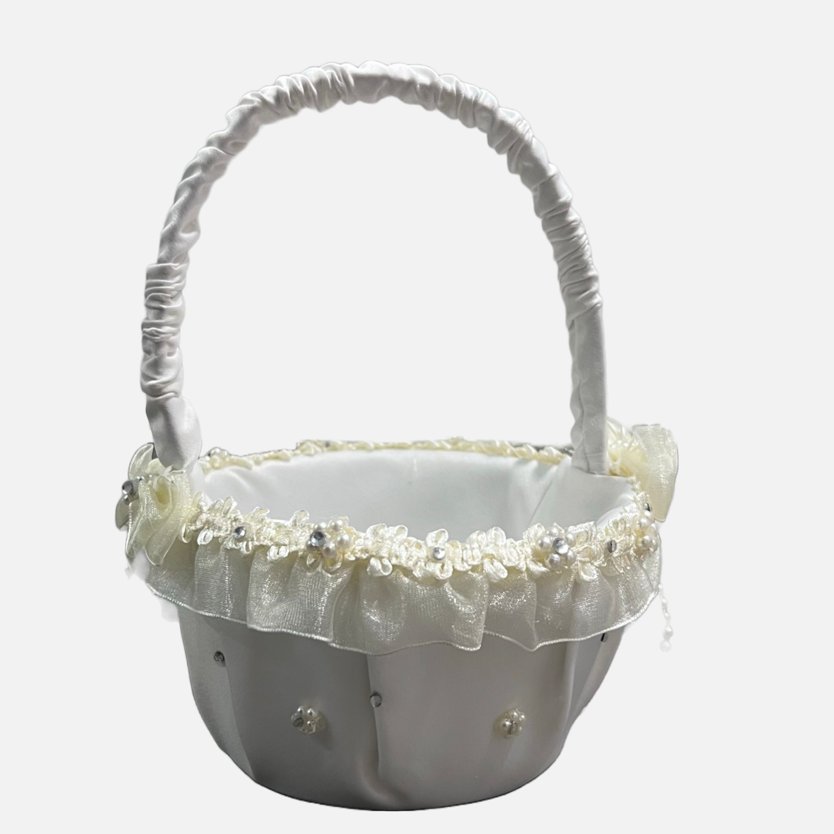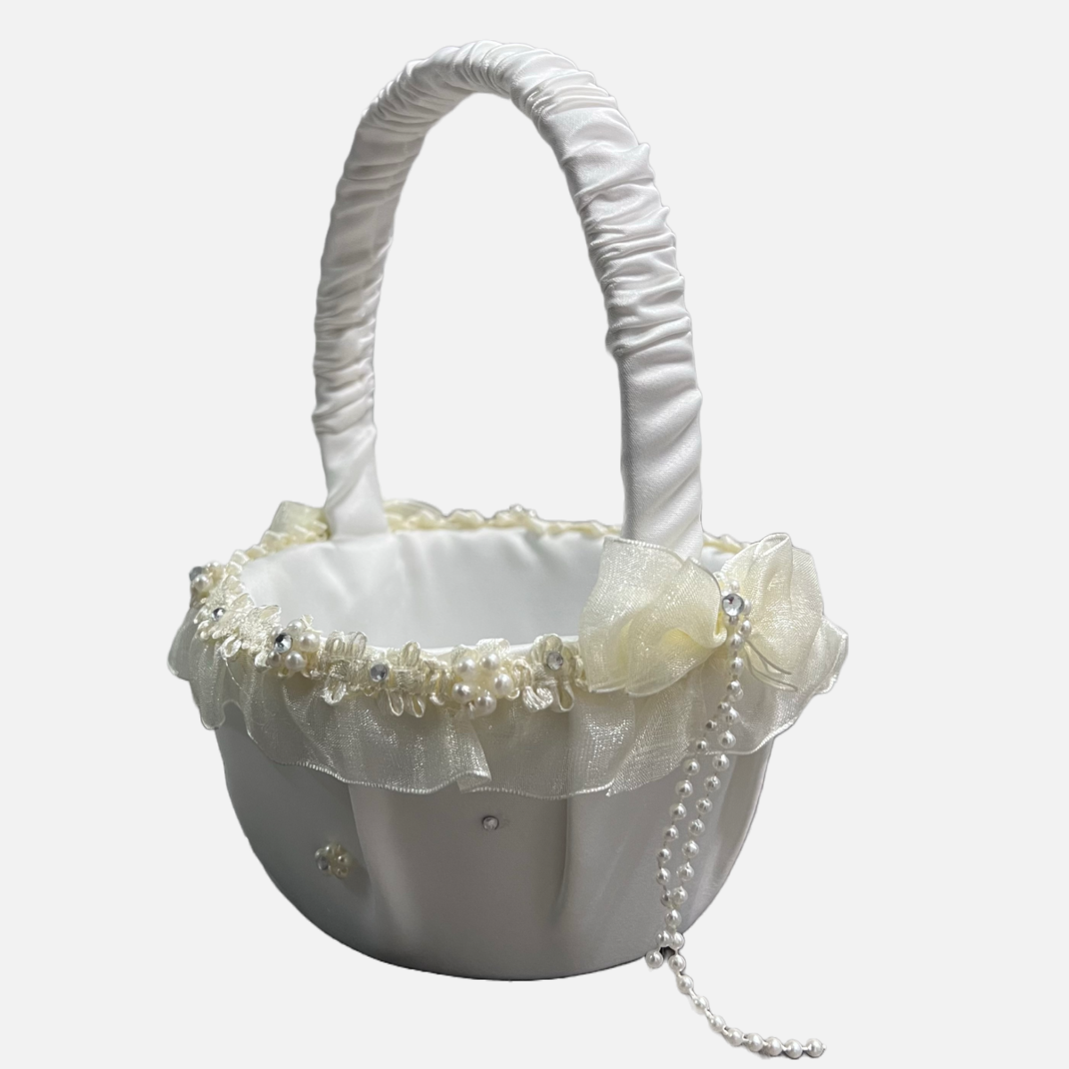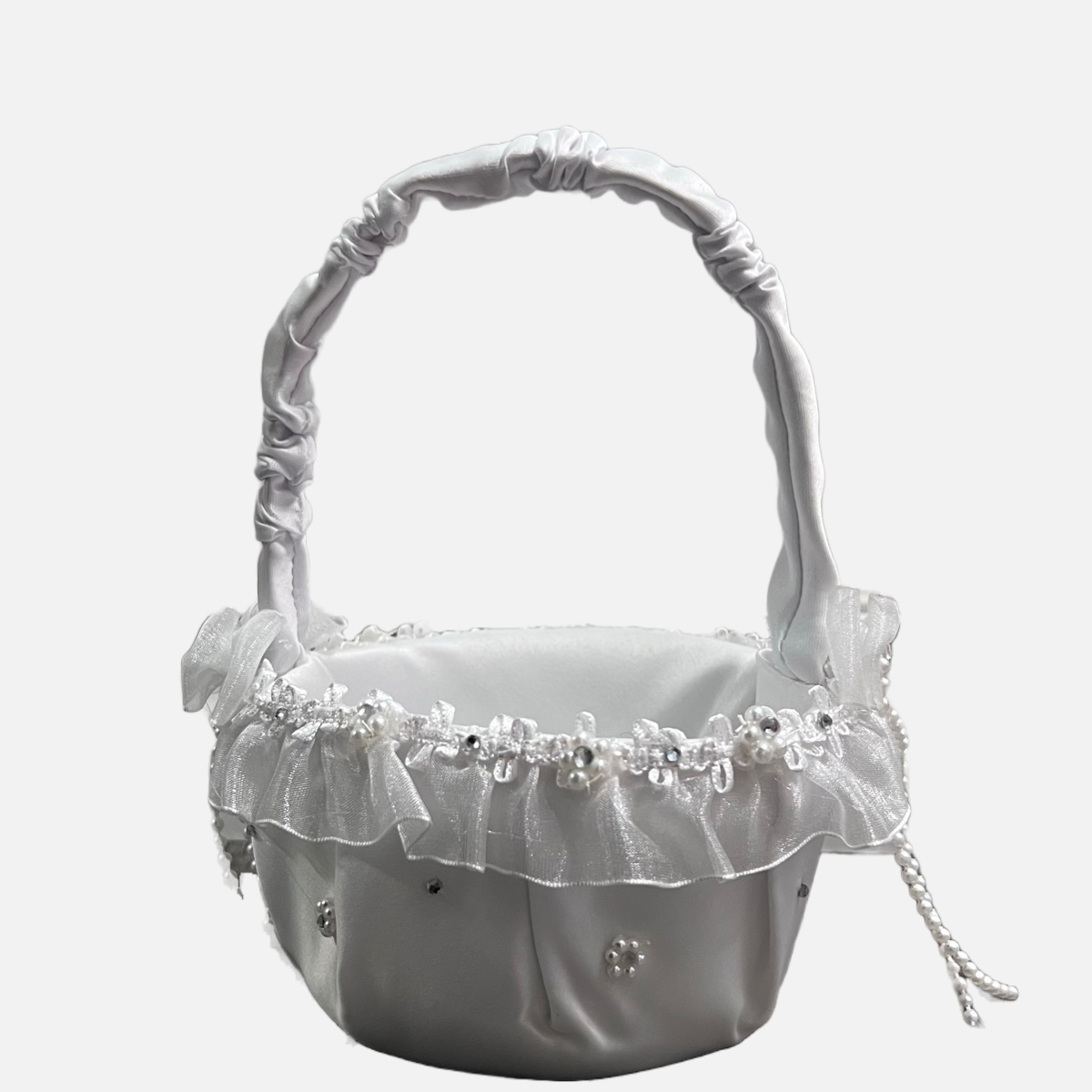 Flower Girl Basket with Rhinestones and Pearls